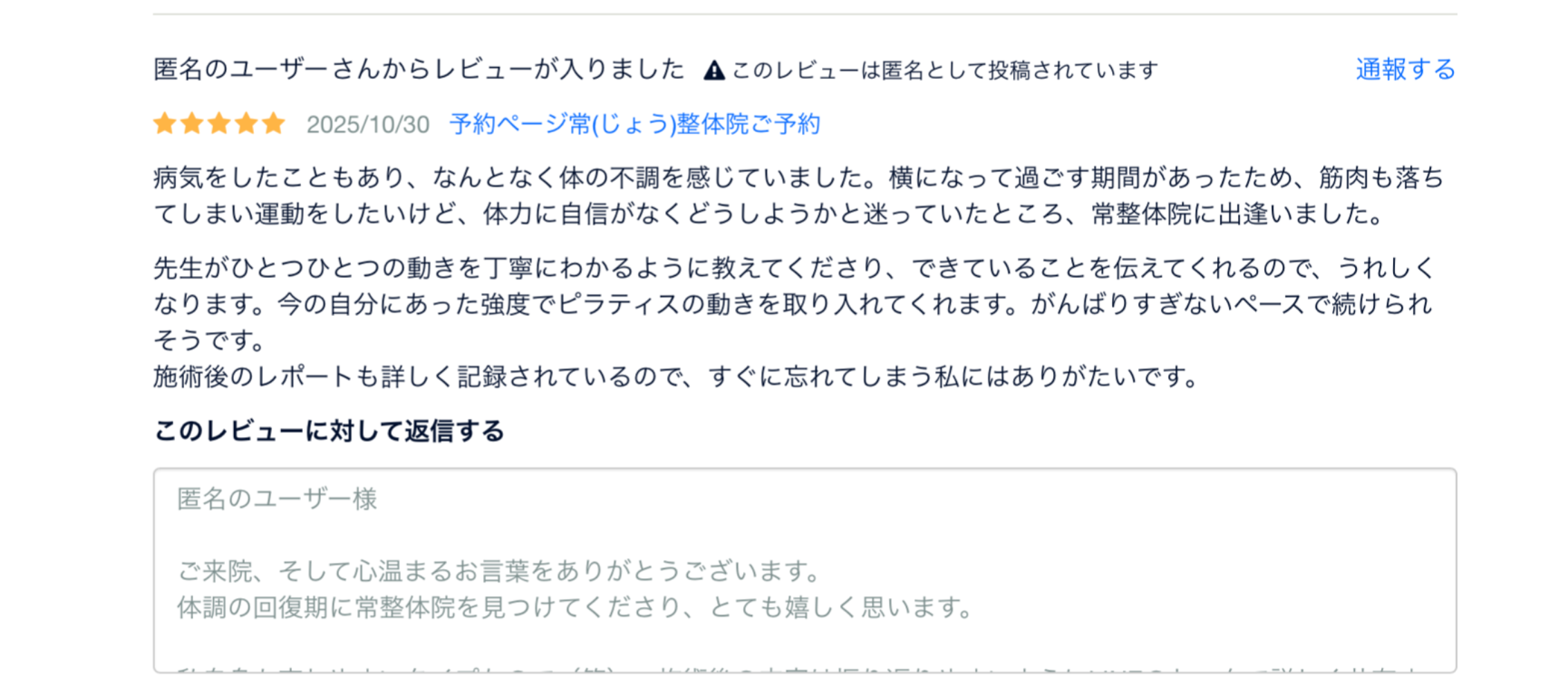 そのうえで、手技と運動療法(ピラティス等)の割合や進め方を含めた施術の流れをご提案いたします。